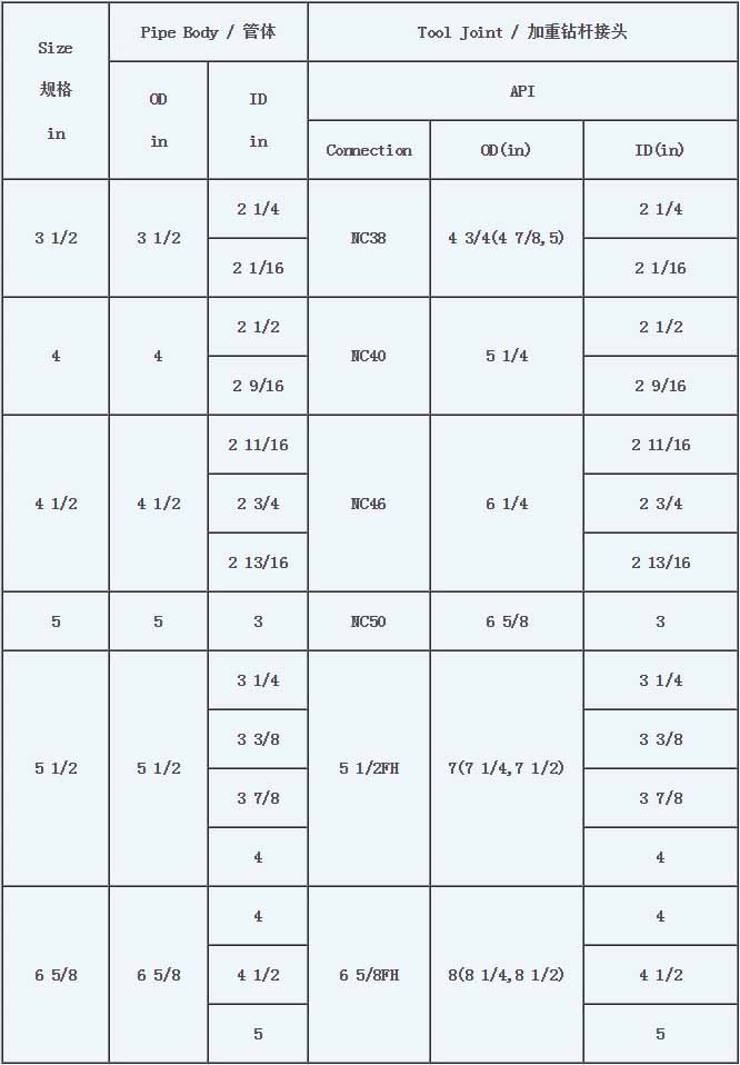 四、 YL-250型惯性摩擦焊机生产钻杆及加重钻杆规格表